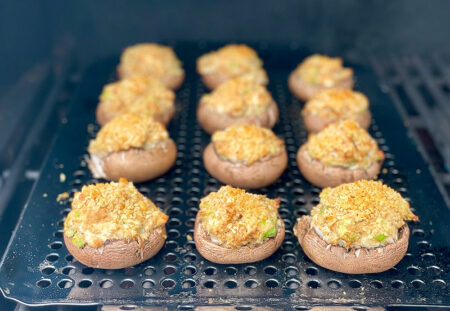 One of their most popular products is the perforated grill topper. It is ideal for keeping smaller items from falling through the grates, grilling vegetables, and fish. I thought grilled stuffed mushrooms would be a cool way to use the perforated grill topper.